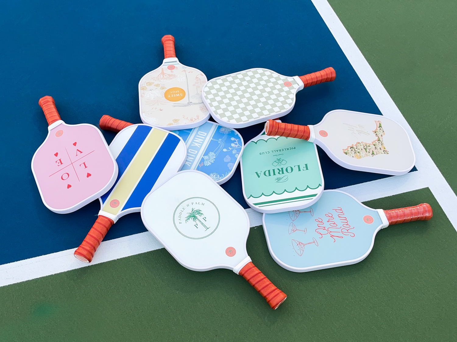 Our paddles are all designed by Paddle and Palm's resident artist, Alle Osborne (daughter of founder Kelly Wilkie). She holds her brush the same way a seasoned pickleball player wields a paddle: with passion and inspiration.